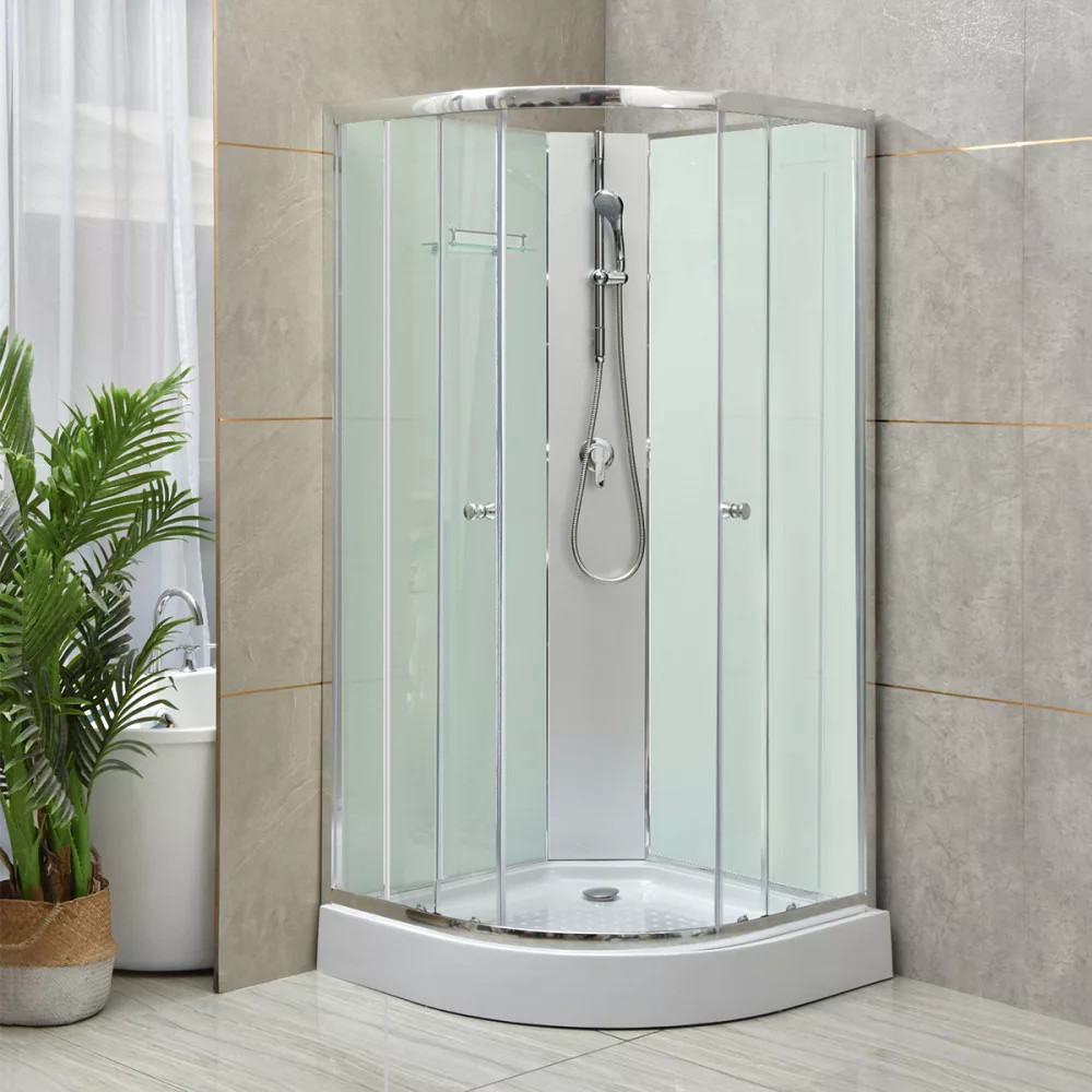 íves zuhanykabin zuhanytálcával és teljes felszereltséggel
