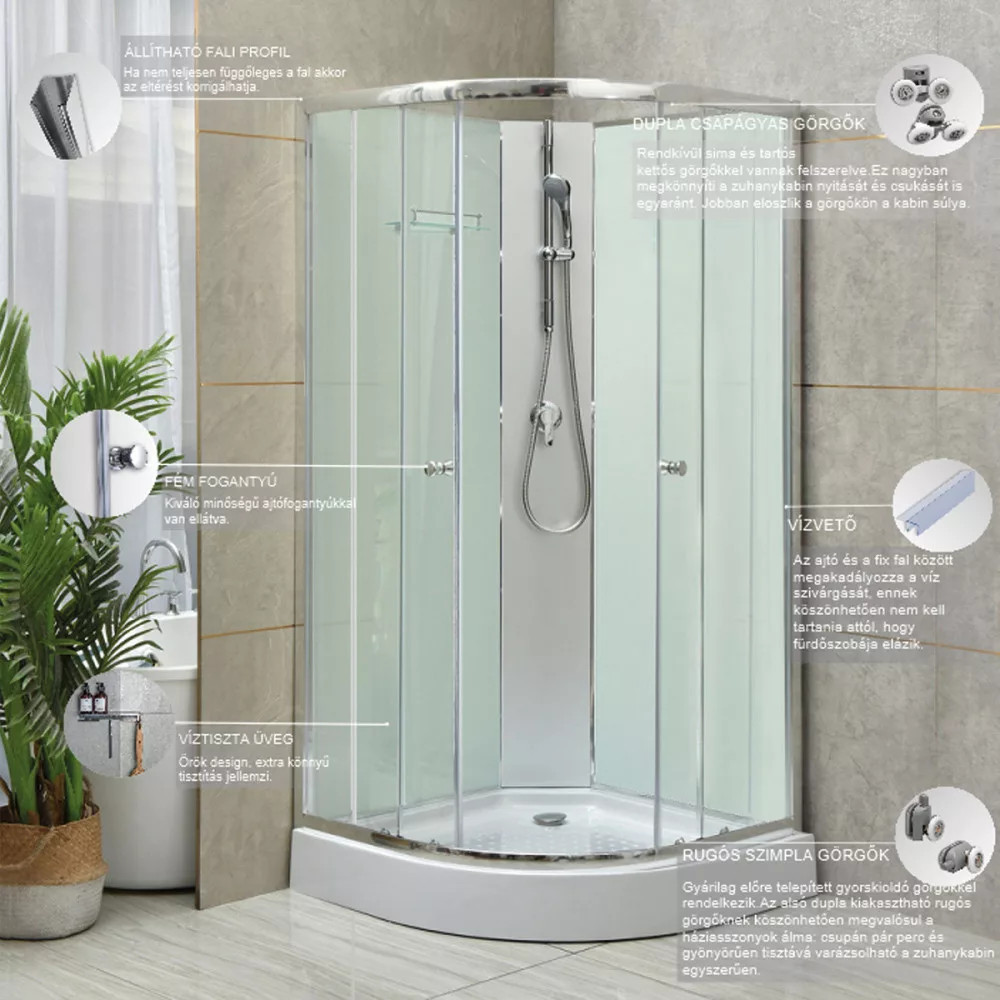 • Akik hosszú távú, stabil szerkezetű zuhanykabint szeretnének csendes ajtómozgással.