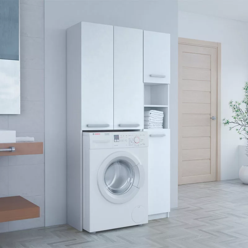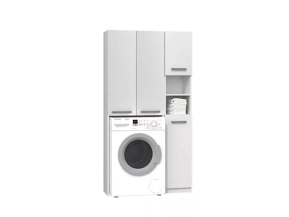 Az univerzális megjelenés megfelel mindenki elvárásainak, akik az egyszerűség és az elegancia kombinációját értékelik.A praktikus szekrény helyet biztosít a mosógépnek és egyéb dolgaidnak, valamint hangsúlyozza a modern, minimalista dizájnt.