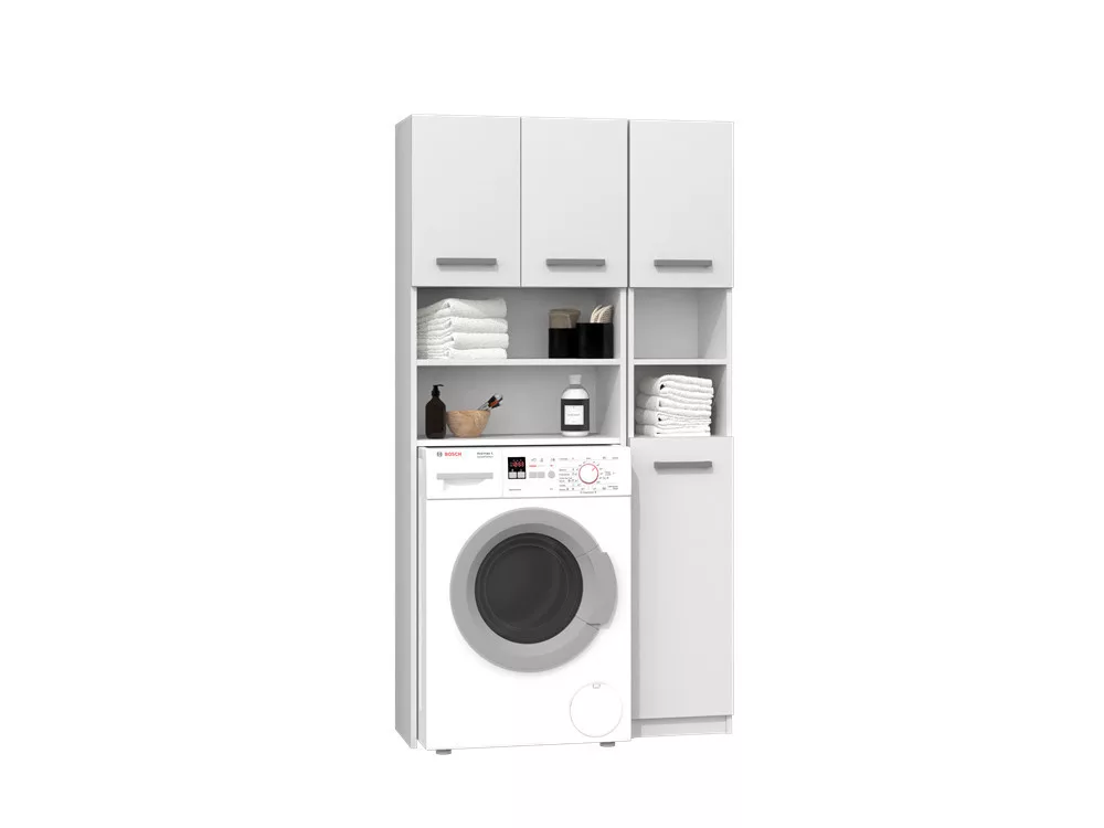 Az univerzális megjelenés megfelel mindenki elvárásainak, akik az egyszerűség és az elegancia kombinációját értékelik.A praktikus szekrény helyet biztosít a mosógépnek és egyéb dolgaidnak, valamint hangsúlyozza a modern, minimalista dizájnt.