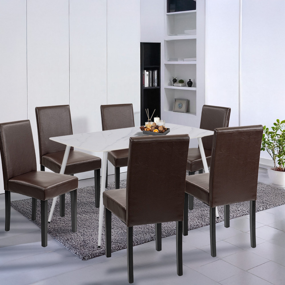 A garnitúra része hat darab Leziter Kelly szék, amelyek barna ECO bőr kárpitozásuknak köszönhetően nemcsak elegánsak, hanem rendkívül könnyen tisztíthatók is. A vastag, 4 cm-es habszivacs ülőfelület kényelmet biztosít akár egy hosszabb vacsora során is, a stabil fenyőfa lábak pedig 120 kg-os teherbírásukkal még intenzív használat esetén is megbízható társak maradnak.