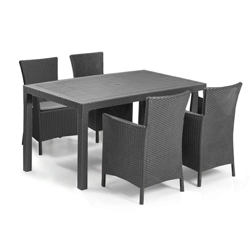 Meliowa étkezőasztal szett, amely tartalmaz egy Melody asztalt és hat darab Iowa karfás széket a hozzá tartozó párnával. Az eredeti, rattan-szerű felület meg fog felelni még a legigényesebb felhasználók számára is. A termék nagyon könnyen összeszerelhető és karbantartható. A bútorok felülete ellenálló a nedvességgel és az UV sugárzással szemben, ami hosszú élettartamot garantál. A rattanbútor lapra szerelve érkezik.