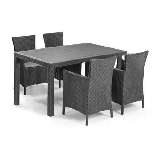Meliowa kerti bútor szett, amely tartalmaz egy Melody asztalt és négy darab Iowa karfás széket a hozzá tartozó párnával.