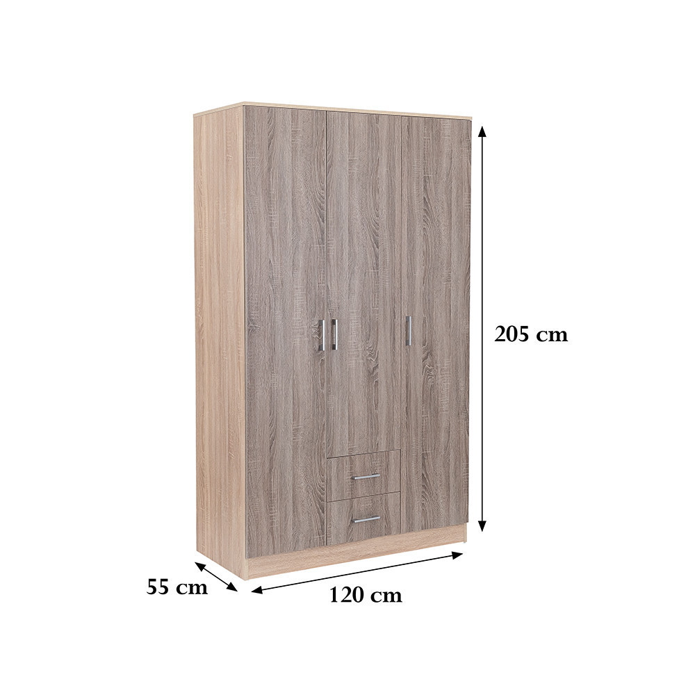 Az elegáns sonoma tölgy front és a fahatású yorki tölgy korpusz ötvözete tökéletes harmóniát teremt a nappaliba vagy a hálószobába egyaránt. A 205 cm magas, 120 cm széles és 55 cm mély gardróbszekrény ideális választás mindenki számára, aki szeretné rendszerezni ruháit és kiegészítőit.