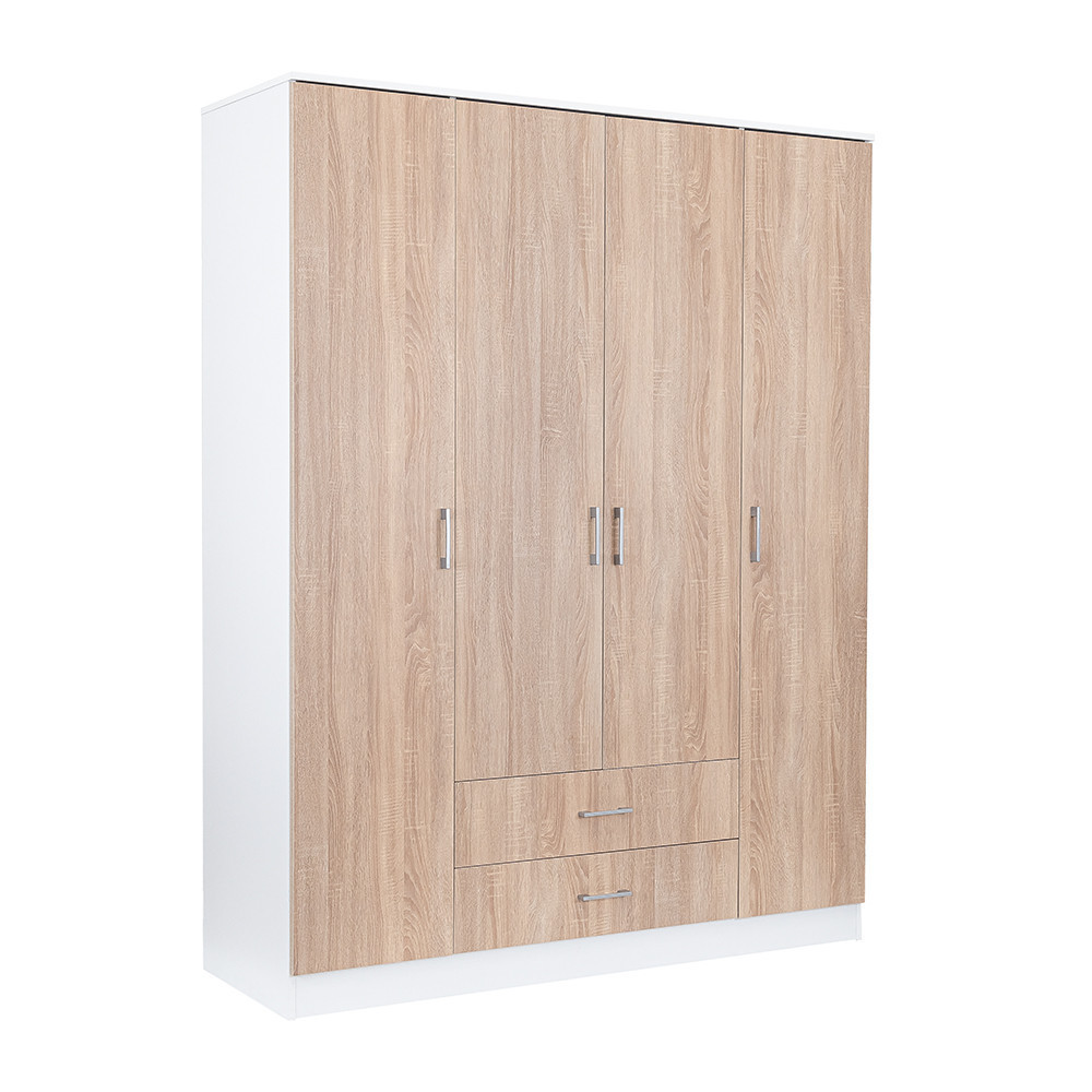 Az elegáns sonoma tölgy front és a fahatású fehér korpusz ötvözete tökéletes harmóniát teremt a nappaliba vagy a hálószobába egyaránt. A 205 cm magas, 160 cm széles és 55 cm mély gardróbszekrény ideális választás mindenki számára, aki szeretné rendszerezni ruháit és kiegészítőit.