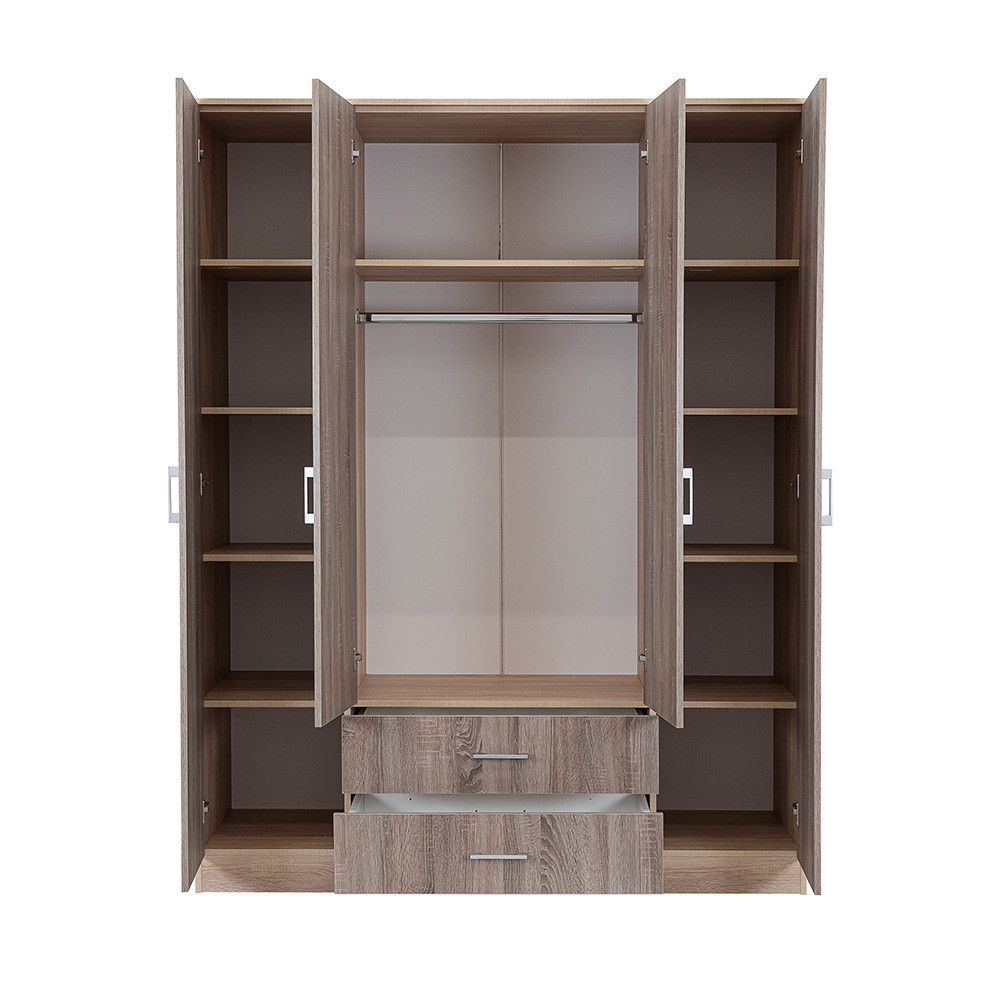 Az elegáns yorki tölgy front és a fahatású sonoma tölgy korpusz ötvözete tökéletes harmóniát teremt a nappaliba vagy a hálószobába egyaránt. A 205 cm magas, 160 cm széles és 55 cm mély gardróbszekrény ideális választás mindenki számára, aki szeretné rendszerezni ruháit és kiegészítőit.