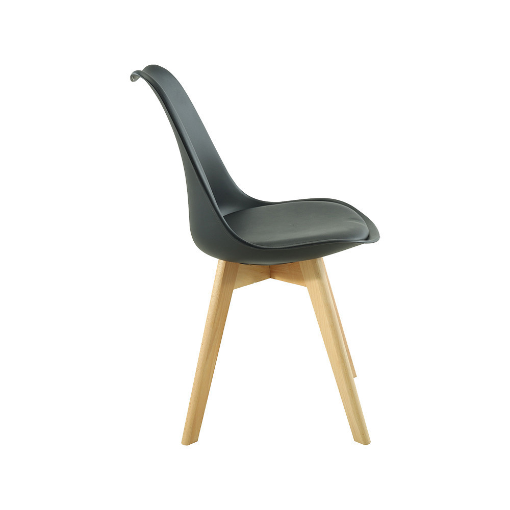• Elegáns design: fekete színű, polipropilén ülőfelület és fekete PVC párnázat, természetes bükkfa színű lábakkal. Modern és elegáns megjelenés.