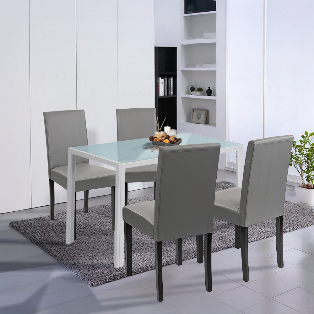 Te is unod már a billegő asztalokat és a kényelmetlen, nyikorgó székeket, amelyek elrontják a közös étkezések hangulatát? A családi vacsorák, ünnepi alkalmak vagy baráti összejövetelek során mindenki kényelmet és stílust keres – de egy instabil asztal vagy nehezen tisztítható felületek csak bosszúságot okoznak. Főleg, ha kisgyermekekkel vagy gyakori vendégekkel élsz együtt, ez folyamatos stressz forrása lehet. A Leziter Mira 4+1 étkezőgarnitúra fehér-szürke színben ezt a problémát végleg megoldja: elegáns szett, amely négy kényelmes széket és egy stabil, modern üveg étkezőasztalt kínál — tökéletes választás otthonra, irodába vagy vendéglátóhelyekre egyaránt.
