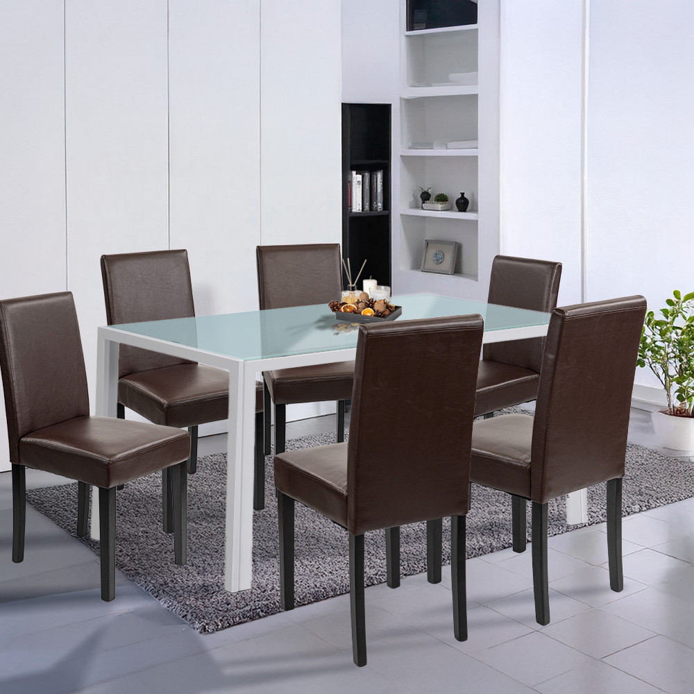 A garnitúra része hat darab Leziter Kelly szék, amelyek barna ECO bőr kárpitozásuknak köszönhetően nemcsak elegánsak, hanem rendkívül könnyen tisztíthatók is. A vastag, 4 cm-es habszivacs ülőfelület kényelmet biztosít akár egy hosszabb vacsora során is, a stabil fenyőfa lábak pedig 120 kg-os teherbírásukkal még intenzív használat esetén is megbízható társak maradnak.