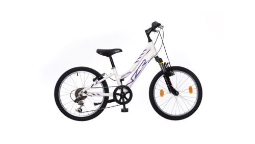 A Neuzer Mistral 20 lány fehér/lila-fekete ideális választás gyermek kerékpározás kezdőknek, fiatal lányoknak, akik megbízható és könnyű városi biciklit keresnek 20 colos kerékmérettel és Shimano váltórendszerrel.