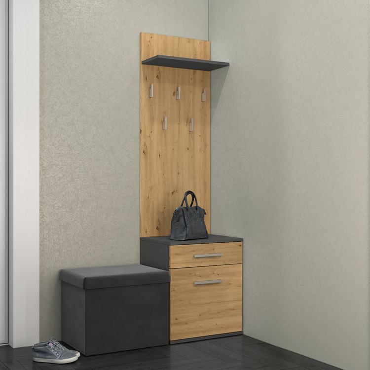 Na Buty Duo előszoba szekrény fogassal, antracit/tölgy