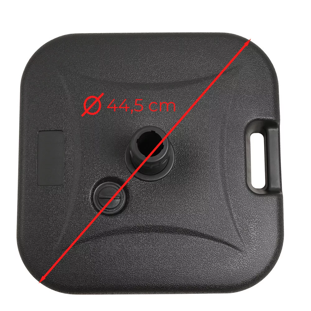 A Napernyőtalp 20 L a Solari kerti napernyőkhöz és a Gina kerti napernyőkhöz is ajánlott, ahol 38 mm átmérőjű rúdhoz megfelelő, vízzel vagy homokkal tölthető talpra van szükség.