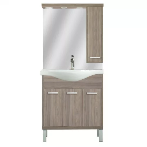 A fürdőszobabútor kevés helyet foglal viszont tágas alsó és felső szekrénnyel rendelkezik, ahol kényelmesen elférnek a fürdőszobai pipere eszközök. Kevés helyigénye miatt kisebb fürdőszobák berendezésére is alkalmas, például panel lakásokban. A termék magas minőségű bútorlapból készül és színben passzoló élzárókkal van ellátva. A fürdőszobabútor mosdóval együtt kapható.