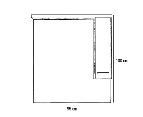 A tükrös szekrény kevés helyet foglal viszont rendelkezik egy tárolós résszel ahol kényelmesen elférnek a fürdőszobai pipere eszközök. Kevés helyigénye miatt kisebb fürdőszobák berendezésére is alkalmas, például panel lakásokban. A termék magas minőségű bútorlapból készül és színben passzoló élzárókkal van ellátva. A fürdőszoba bútor felfüggesztett kivitelben kapható.