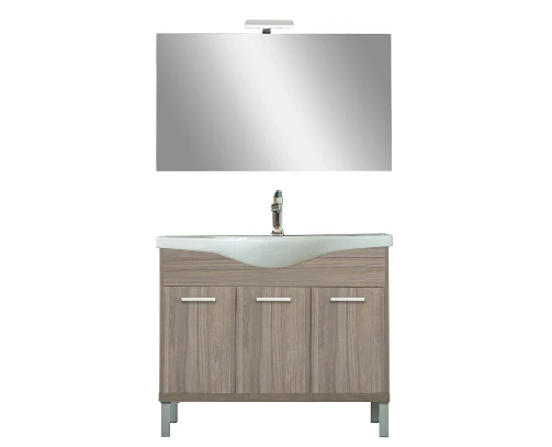 A fürdőszobabútor kevés helyet foglal viszont tágas alsó szekrénnyel rendelkezik ahol kényelmesen elférnek a fürdőszobai pipere eszközök. Kevés helyigénye miatt kisebb fürdőszobák berendezésére is alkalmas, például panel lakásokban. A termék magas minőségű bútorlapból készül és színben passzoló élzárókkal van ellátva. A fürdőszoba bútor mosdóval együtt kapható.