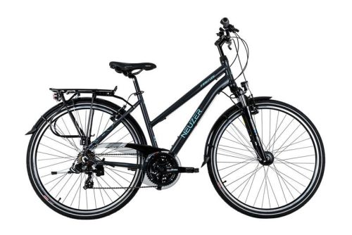 A Neuzer Firenze 100 nõi antracit/neon türkiz modell alumínium váza és SunTour villa biztosítják a kényelmes testtartást és stabil haladást városi közlekedés során. A Shimano háromszoros első és hétszeres hátsó váltórendszer könnyű irányíthatóságot tesz lehetővé különböző terepen is. Az állófényes agydinámóval felszerelt világítás garantálja a megbízható működést akár szürkületben is. A Logan V-fékek hatékony fékezést biztosítanak biztonságos megállásokhoz, míg az extrák között megtalálható sárvédő és csomagtartó támogatja a mindennapi használat praktikumát.