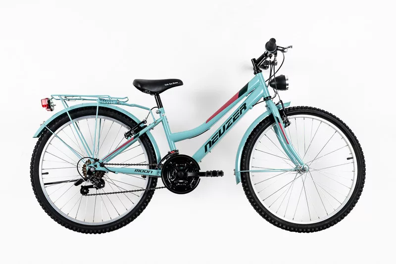 A Neuzer MOON 24 CITY unisex kerékpár türkiz/zöld színben kiváló választás gyerekeknek és fiataloknak városi használatra.
