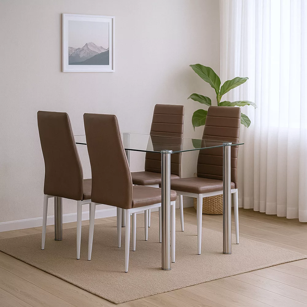 Nolen 4+1 étkezőgarnitúra – Modern elegancia barna székekkel és edzett üvegasztallal