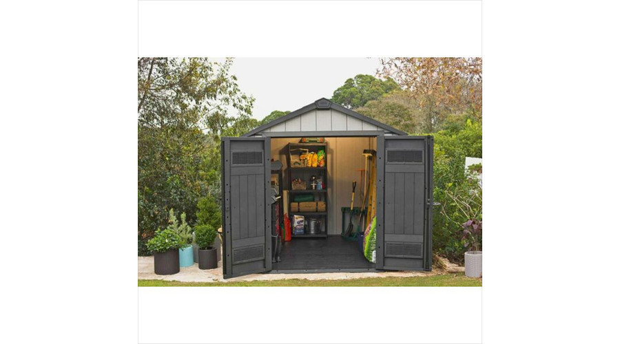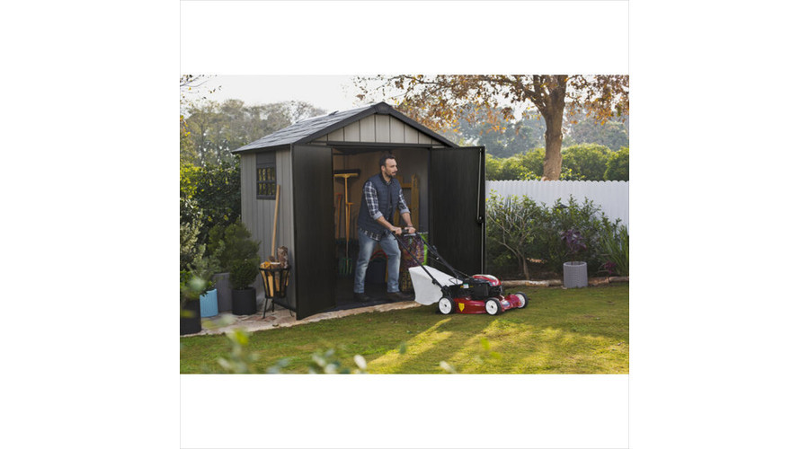 A műanyagból készült OAKLAND 757 kerti ház erős acélvázzal rendelkezik, amely garantálja a stabilitást még szélsőséges időjárási körülmények között is. A nyeregtető kialakítás hatékony vízelvezetést biztosít, míg a széles kétszárnyú ajtó könnyű hozzáférést tesz lehetővé nagyobb méretű eszközök be- és kipakolásához. A festhető felület pedig lehetőséget ad arra, hogy az épület harmonikusan illeszkedjen bármilyen kert designjához.