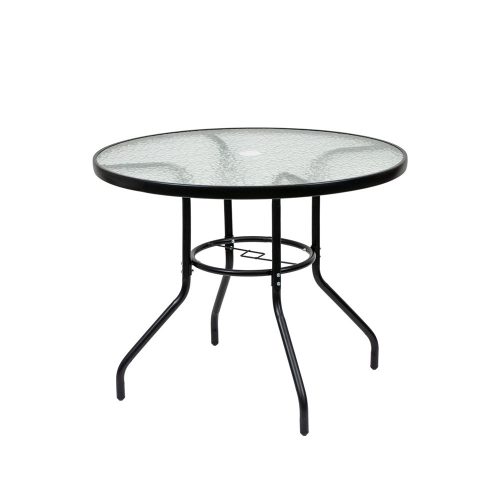 A fémvázas üveg kerti asztalok modern és elegáns megjelenést kölcsönöznek a kertnek vagy a terasznak. Az üveglap áttetsző, ami légies külsőt kölcsönöz. Terítő nélkül is dekoratav eleme a térnek ez az asztal.