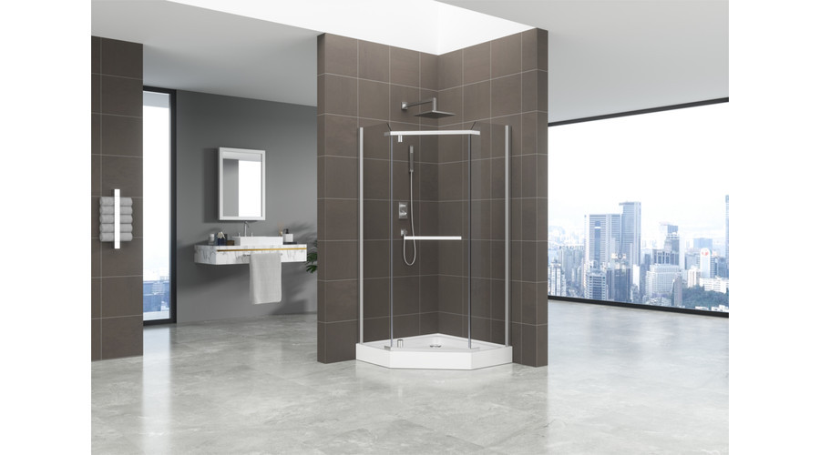 Ezzel az ötszögletű zuhanykabinnal helytakarékos megoldást kapunk anélkül, hogy kompromisszumot kellene kötni a minőség vagy az esztétika terén. Az alumínium profilokkal megerősített szerkezet stabilitást biztosít még intenzív használat mellett is, míg az edzett üveg elemek ellenállóvá teszik a kabint hosszabb időre. A kombinált ABS-akril tálca pedig hozzájárul ahhoz, hogy könnyen karbantartható legyen.