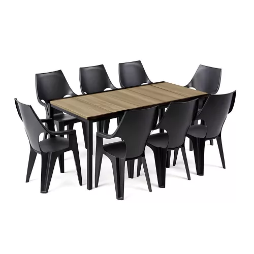 A jellegzetes, enyhén lekerekített magas háttámla és az áramvonalas kartámasz egész napos kényelmet biztosít. Ha épp nincs szükség mind a hat székre, pillanatok alatt egymásra pakolhatod őket – így egy kis erkélyen vagy tárolóban is könnyen elférnek. A teljesen műanyag váz korróziómentes, nincs festési vagy lakkozási igény, és bátran kint hagyhatod a tűző napon vagy egy záporban is.