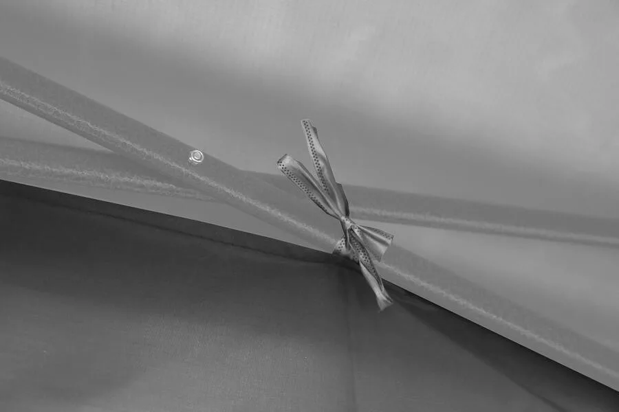 Az oldalfal egyszerűen rögzíthető több ponton való kikötéssel a sátor szerkezetéhez, biztosítva a stabil és megbízható rögzítést.