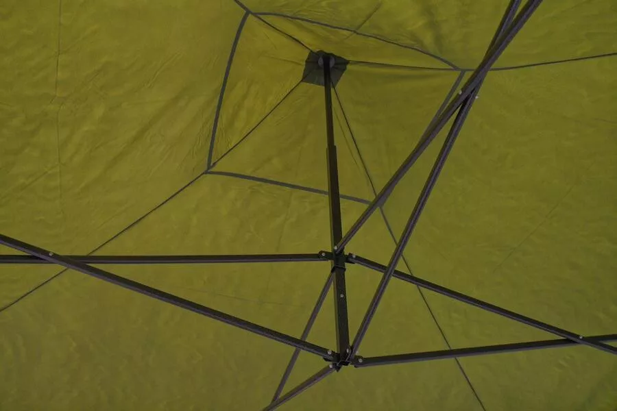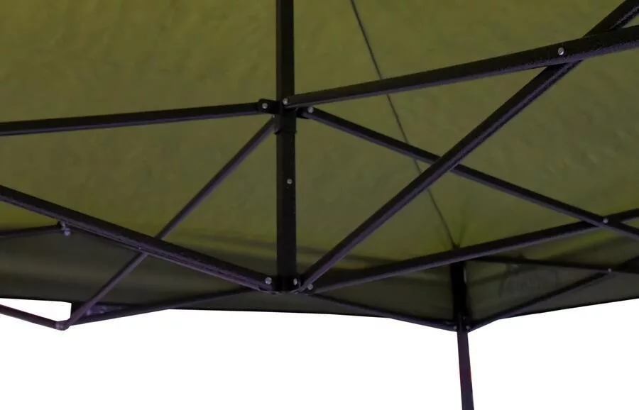 A sátor vázszerkezete acélból készült, amely gyors és egyszerű felállítást és összecsukást tesz lehetővé. A lábak rugós biztosító rendszerrel vannak ellátva, amely lehetővé teszi a kívánt magasság biztonságos beállítását.