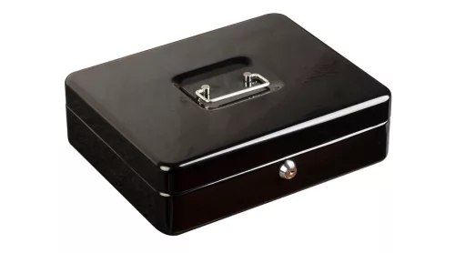 A Pénzkazetta nagy acélból készült, főként kisebb tárgyak és készpénz biztonságos tárolására alkalmas otthoni vagy üzleti környezetben. Kiváló választás olyan helyzetekre, amikor fontos a megbízható védelem és a könnyű szállíthatóság. Praktikus megoldás például eladói pultokhoz vagy irodai készpénz kezeléshez hosszabb távú tárolásra is.