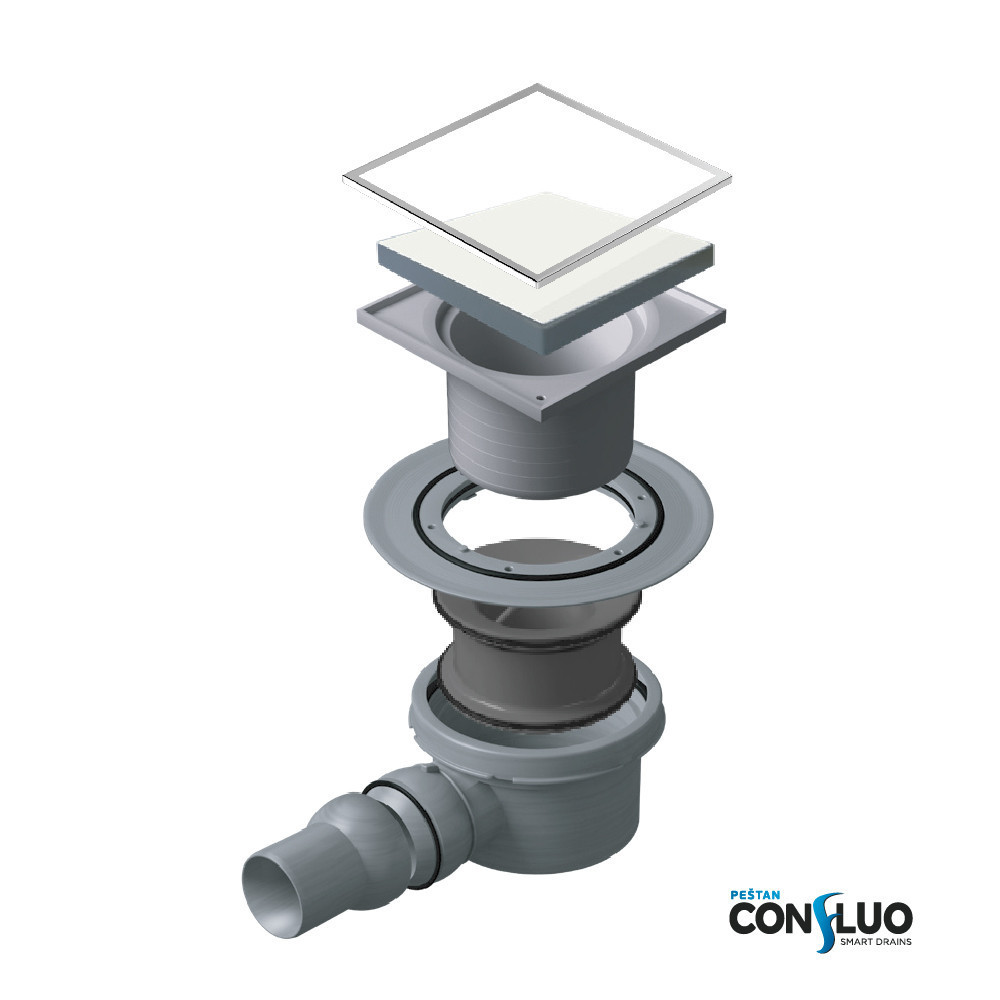 Pestan zuhanyfolyóka Confluo Standard - FEHÉR üveg - 10 x 10 cm