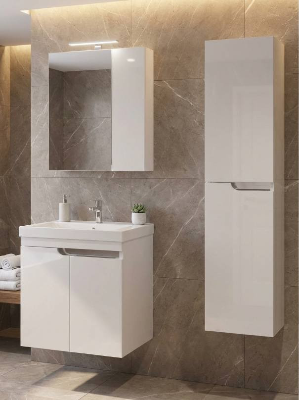 Piramida AKVA Tükrös fürdőszobai szekrény - 2 ajtós kivitel - LED világítással - 60 x 69 x 13 cm