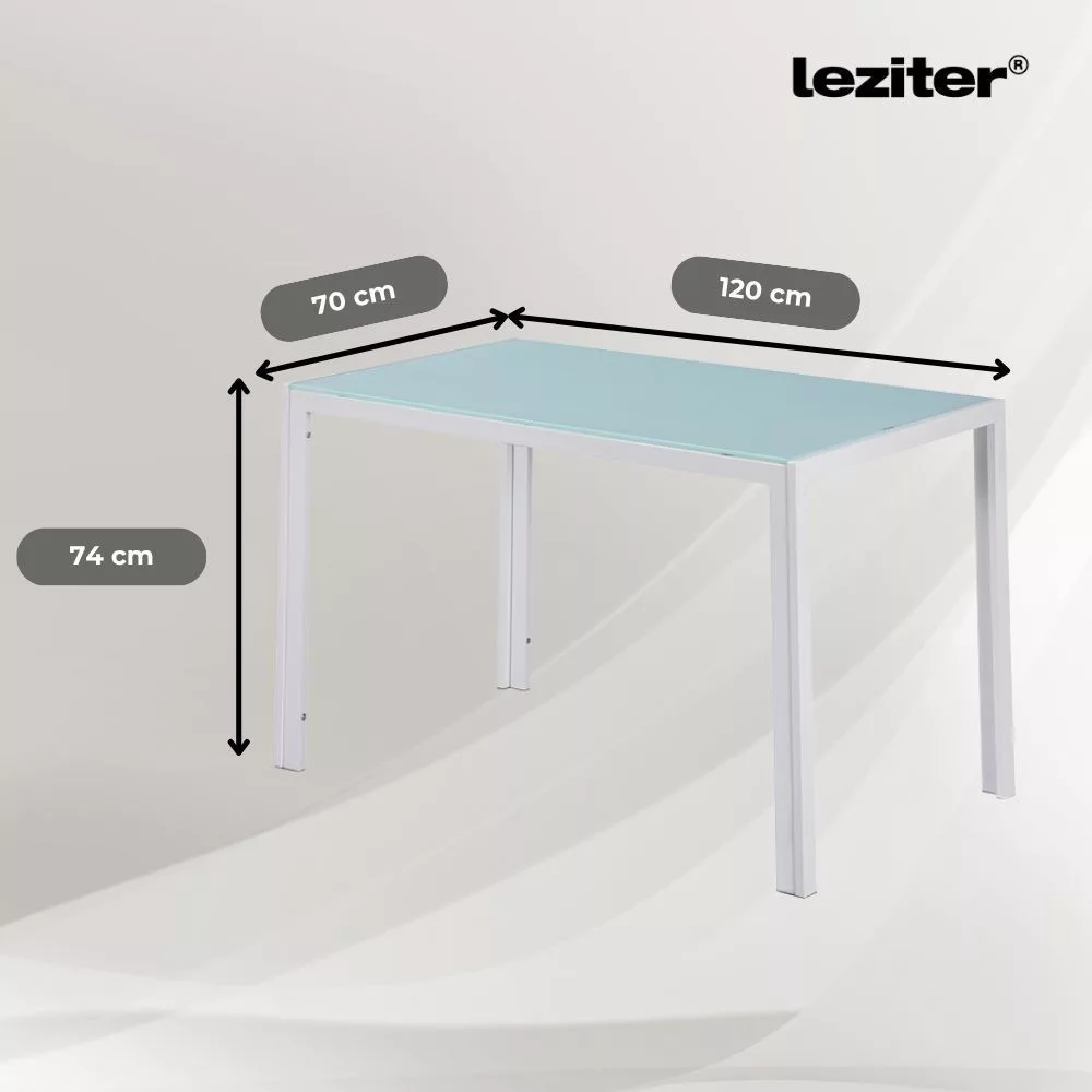 Az üvegfelület elegáns hatást kelt és könnyen tisztítható. A fehér fém lábak stabilitást adnak az asztalnak, és világosabbá, letisztultabbá teszik a teret. Méretének köszönhetően kisebb és nagyobb étkezőkben is jól elfér.