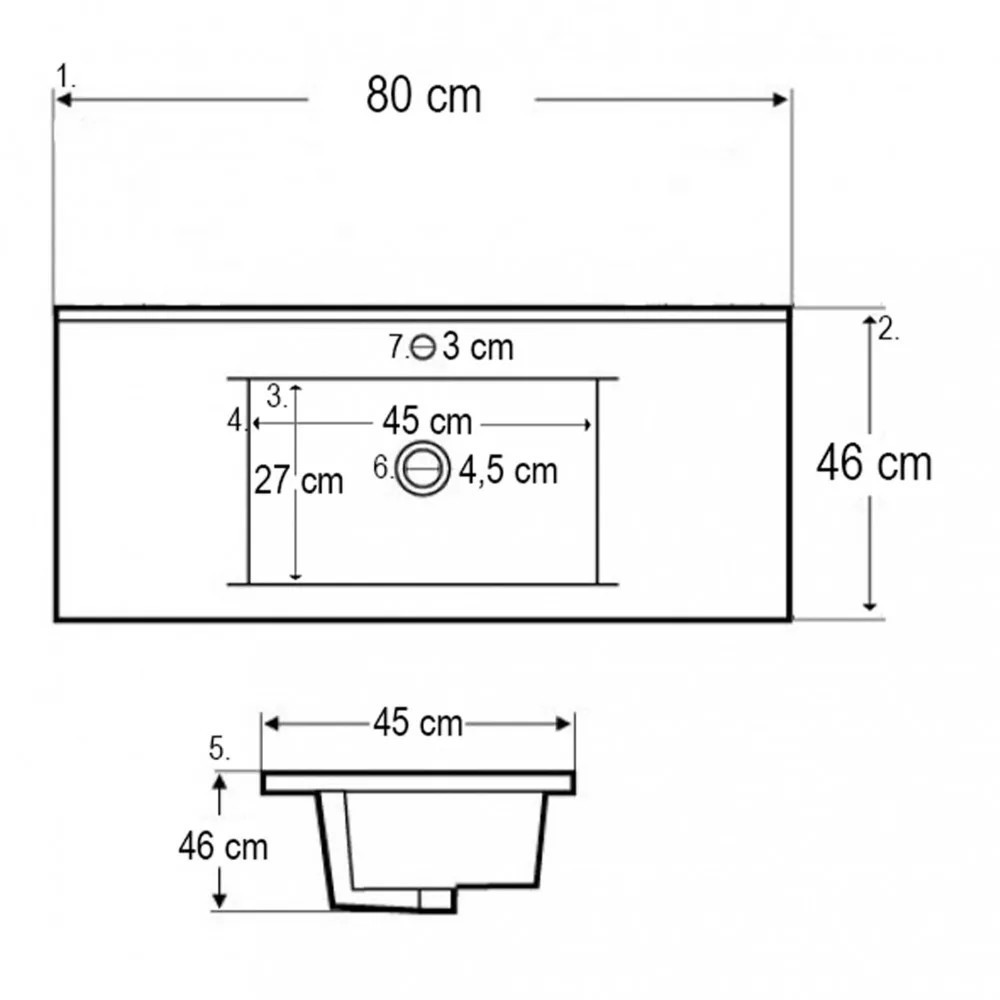 A csomag része a bútorra tökéletesen illeszkedő, fehér színű, mélymedencés kerámia mosdóis, amely egy csaptelep számára kialakított hellyel rendelkezik. így nem kell külön keresni hozzá megfelelő mosdót. A csomag nem tartalmazza a lámpát, a csaptelepet és a leeresztőt!