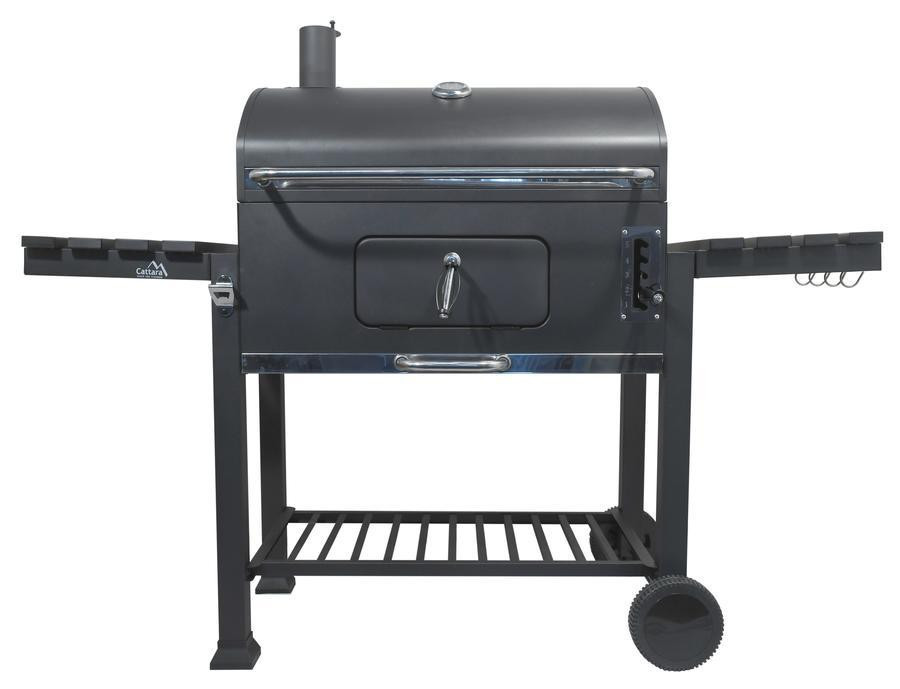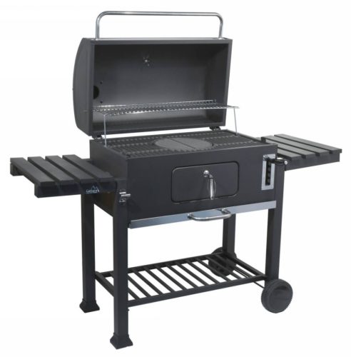 A fém kezelőszervek és fogantyúk elég nagyok a kényelmes fogáshoz és a könnyű kezeléshez. A kétoldalas acél szellőzővezérlés tökéletesen illeszkedik a szerkezethez. A csuklós fedelet felül egy kémény egészíti ki, és hőmérővel is fel van szerelve a grillen belüli hőmérséklet állandó szabályozására.