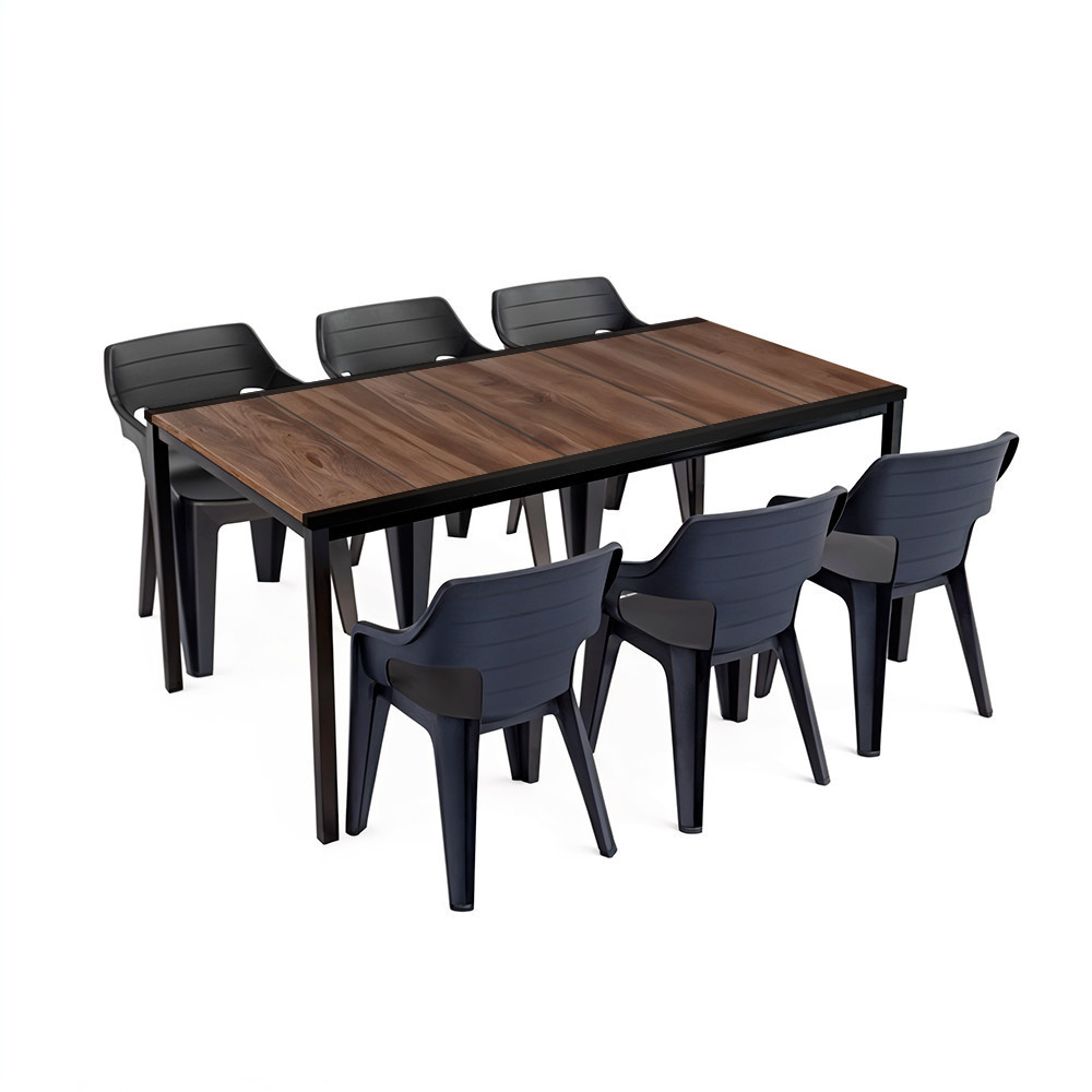 Keter Ravello Large 6 + 1 kerti garnitúra – dió asztallap & fekete rakásolható székek