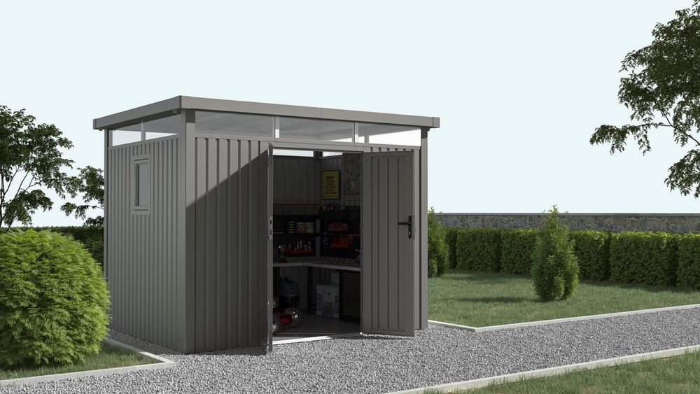 Az ROJAPLAST ANNA "C" FÉM KERTI HÁZ egy kiváló minőségű és praktikus tároló megoldás a kert szerelmesei és hobbi kertészek számára. Ezt a 222 x 294 x 230 cm-es kerti házat számos célra felhasználhatja, ideértve a kerti szerszámok, kerékpárok, kaszák, medence kiegészítők és fa tárolását is. A modern kialakítása révén könnyedén illeszkedik bármelyik kert stílusához és környezetéhez.