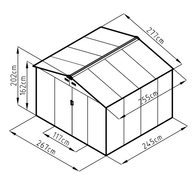 Az ARCHER kerti ház tetője képes elbírni akár 60 kg/m2 hóterhelést is, így télen sem kell aggódnia a tetőszerkezet stabilitása miatt. A horganyzott acél szerkezet szellőzőrácsokkal rendelkezik, amelyek gondoskodnak a megfelelő szellőzésről és elkerülik a nedvesség felhalmozódását.