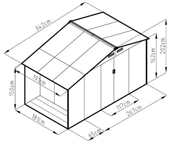 ROJAPLAST LUKE B fém kerti ház, tároló szürke - 342 x 191 x 202 cm
