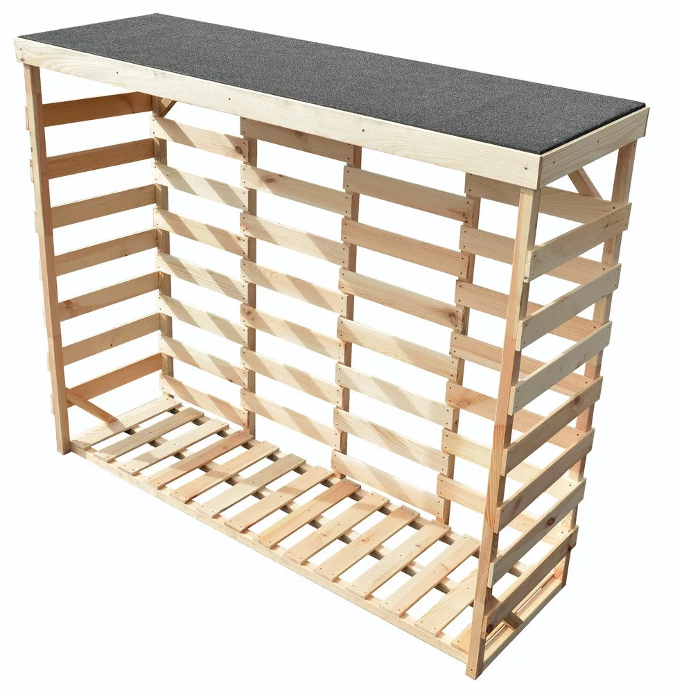 Praktikus Kátránypapírtető: A fatároló része egy praktikus kátránypapírtető, amely megvédi a tárolt fát az esőtől és a nedvességtől. Ezáltal a fája mindig száraz és készen áll a használatra.