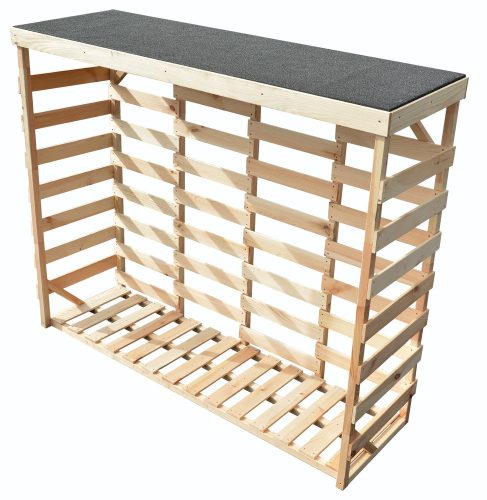 A Rojaplast fenyőfából készült kültéri fatároló nemcsak praktikus és tartós, hanem stílusos kiegészítője is lehet kertjének vagy házának udvarának. Tárolja faanyagát gondosan és környezettudatosan ezzel a remek termékkel, amely éveken át szolgálja Önt és környezetét.