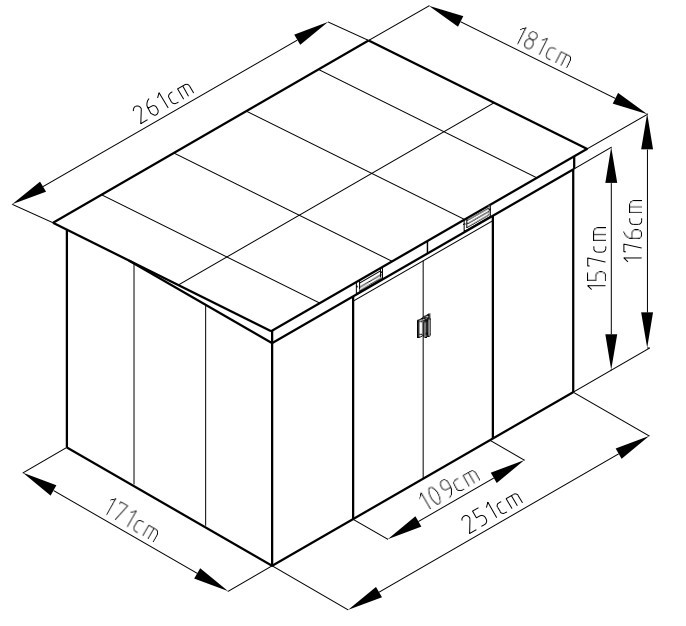 Rojaplast S2001C fém kerti ház, tároló, szürke - 261 x 181 x 176 cm
