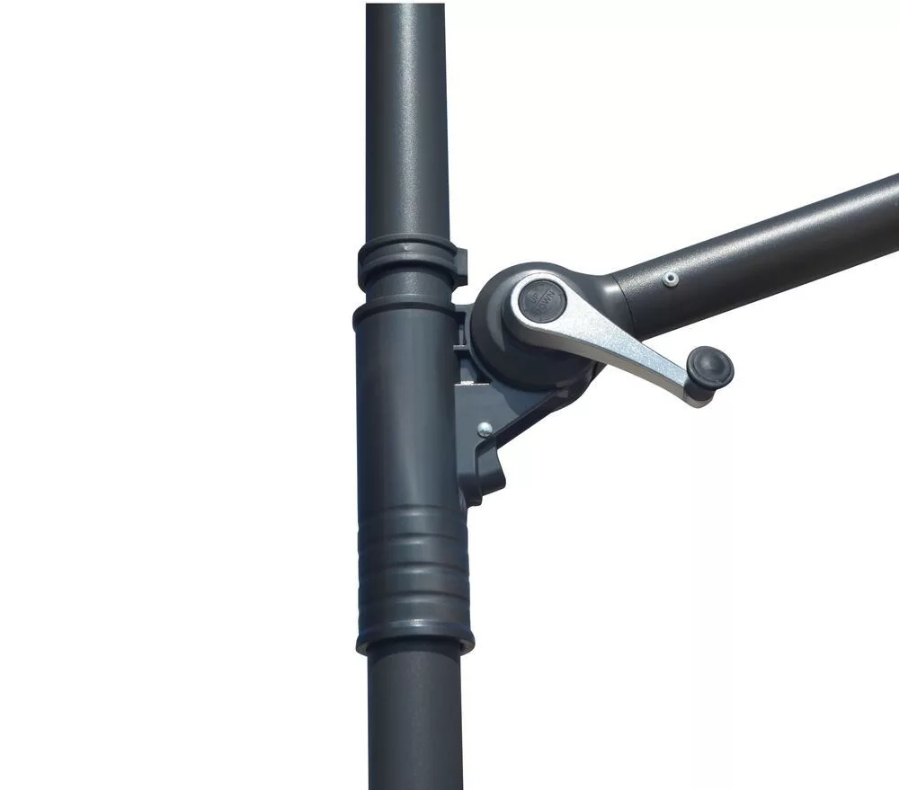 A napernyő része egy kereszttartó, amelyet járdalappal kell megrakni (nem tartozék). A napernyő fogantyúval nyílik. Lehetőség van az árnyékolás szögének beállítására egyszerűen az álló rúd mentén történő mozgatással. Ugyanakkor lehetőség van a pedál segítségével 360°-os elfordításra is.