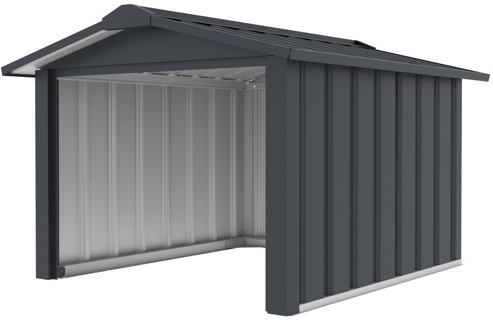 A garázs horganyzott keretének vastagsága 0,5 mm, míg a horganyzott lemezek 0,25 mm vastagsággal rendelkeznek, biztosítva a hosszú távú használatot és ellenállást az időjárás viszontagságaival szemben. A 14°-os dőlésszögű nyeregtető nemcsak esztétikus, hanem praktikus is, hiszen megkönnyíti a csapadék elvezetését.
