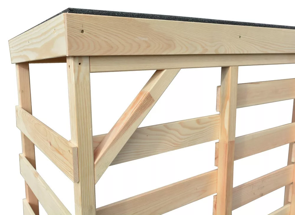 Praktikus Kátránypapírtető: A fatároló része egy praktikus kátránypapírtető, amely megvédi a tárolt fát az esőtől és a nedvességtől. Ezáltal a fája mindig száraz és készen áll a használatra.