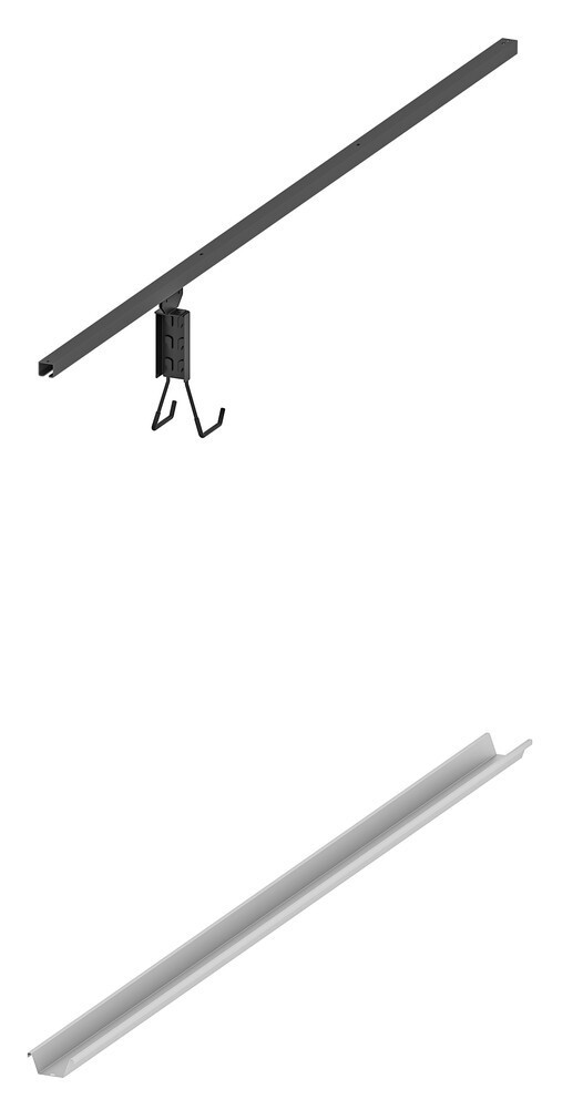 A tartó a kerékpárok egyszerű tárolására használják az AVOCADO kerti tárolóban. Minden tartó 2 sínből és egy tartóból áll. A tetőszerkezetbe egy tartóval ellátott alumínium profil, az alsó sín pedig 0,8 mm vastag horganyprofilból készül.