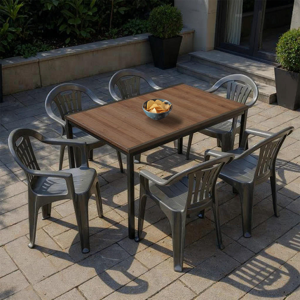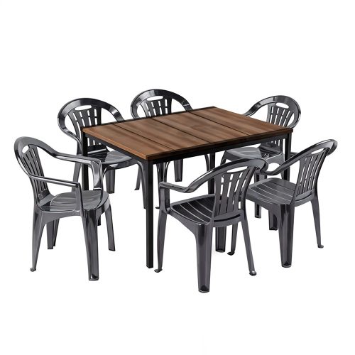 A Rowen 6+1 kerti garnitúra egy megbízható, tartós, mégis esztétikus kültéri étkezőkészlet, ami a modern megjelenést ötvözi a kényelmes használattal. A természetes dió árnyalatú asztallap tökéletes kontrasztban áll a grafit színű székekkel, így ez a szett szinte bármilyen kert- vagy teraszstílushoz passzol.
