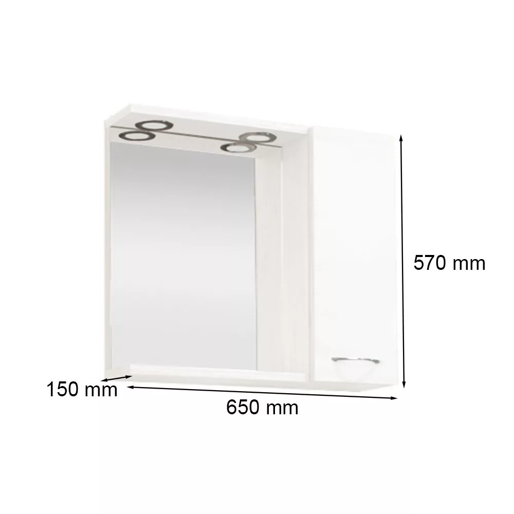 A fürdőszobabútor kevés helyet foglal, tágas felső bútorban kényelmesen elférnek a fürdőszobai pipere eszközök. Kevés helyigénye miatt kisebb fürdőszobák berendezésére is alkalmas, például panel lakásokban. A termék magas minőségű bútorlapból készül és színben passzoló élzárókkal van ellátva.