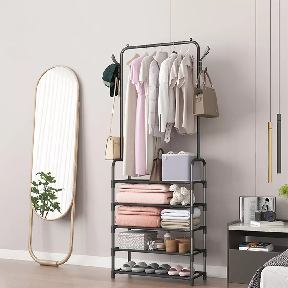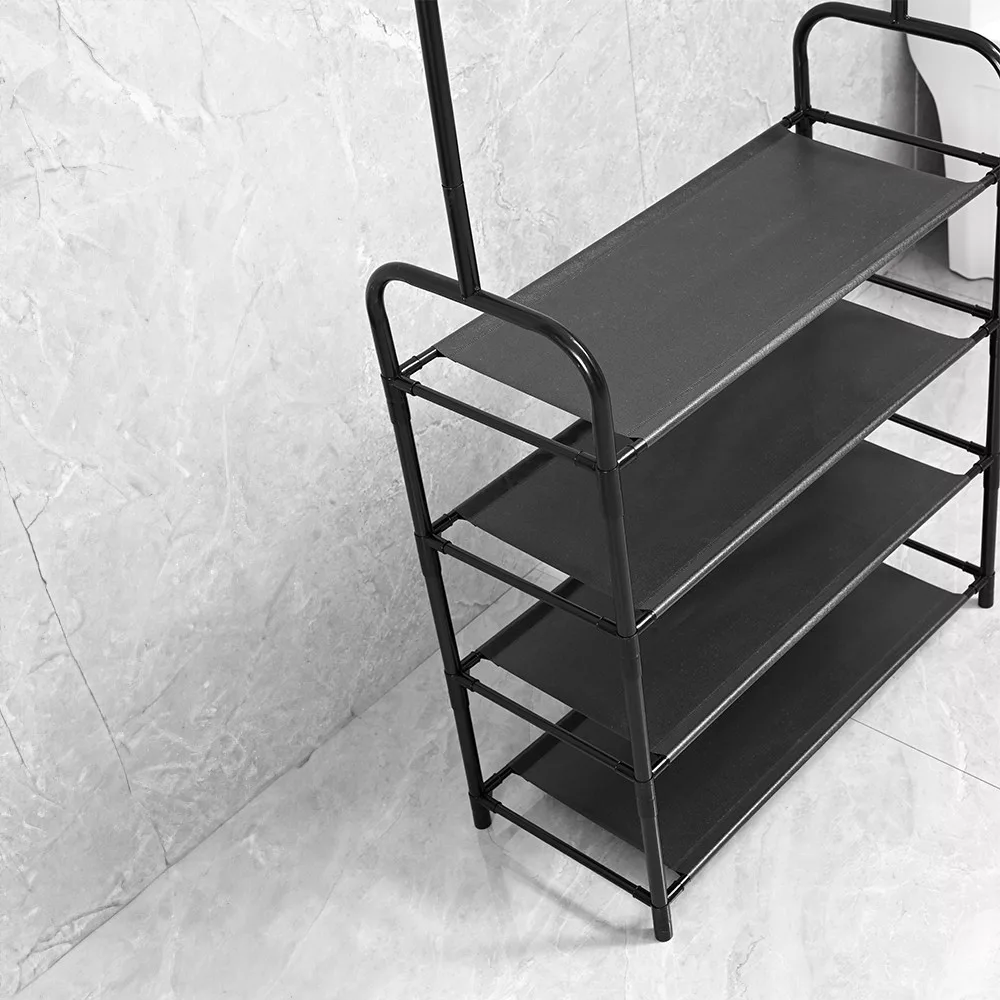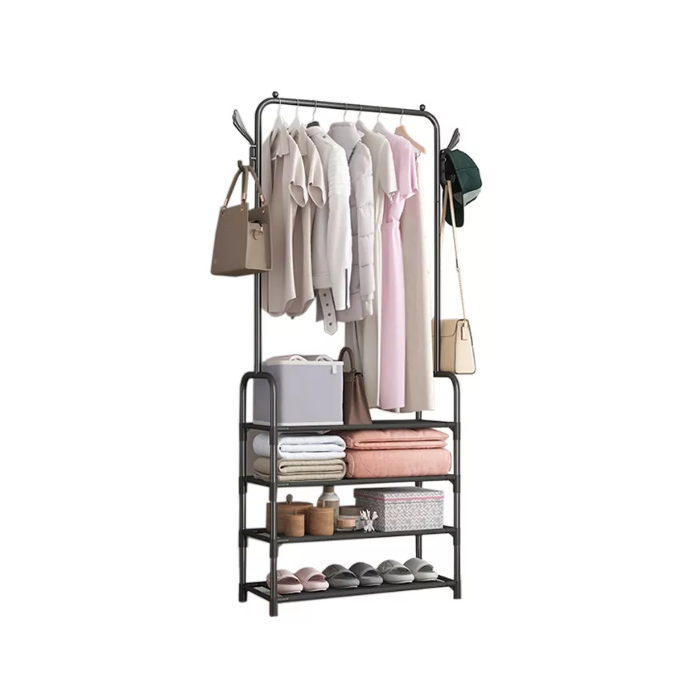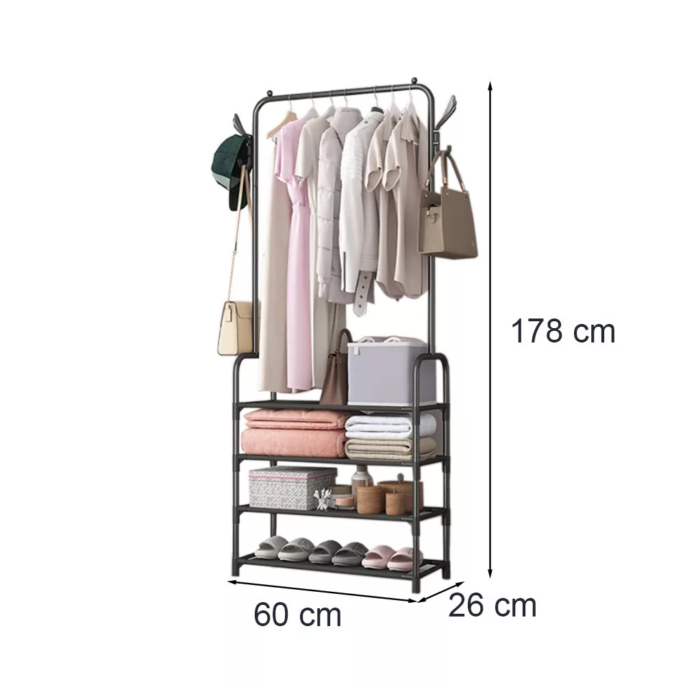• Sokoldalú felhasználhatóság: Az állvány nemcsak ruhák és cipők tárolására alkalmas, hanem kalapok, táskák, sálak és egyéb kiegészítők rendszerezésére is.