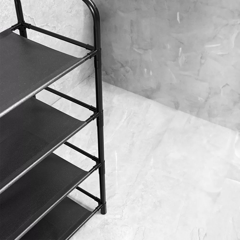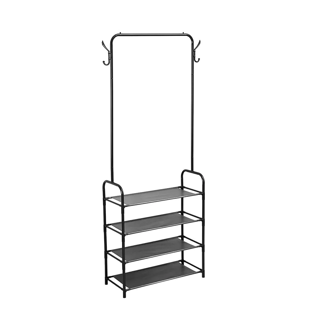 A 4 szintes kialakítás lehetővé teszi, a ruhadarabok, cipők és kalapok rendezett tárolását. Az alsó polcok ideálisak cipők számára, míg a felsőbb szintek tökéletesek az egyéb kiegészítők tárolására. Az állvány könnyen összeszerelhető és kompakt méretének köszönhetően kis helyeken is elfér.