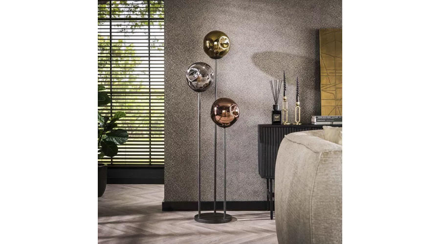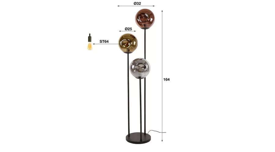 A STELLAR állólámpa gyönyörű, figyelemfelkeltő darab, fémből készült, három üveg búrával. A búrák három különböző színben érhetők el: arany, réz és króm, így elegáns és látványos megjelenést biztosítanak a térnek. A búrák levehetők, így a fényforrások elhelyezése egyszerű és praktikus. Ez az állólámpa a STELLAR sorozat része, és tökéletes választás, ha stílusos, harmonikus fényforrást keresel. A tökéletes fényélmény érdekében LED izzó használata ajánlott.